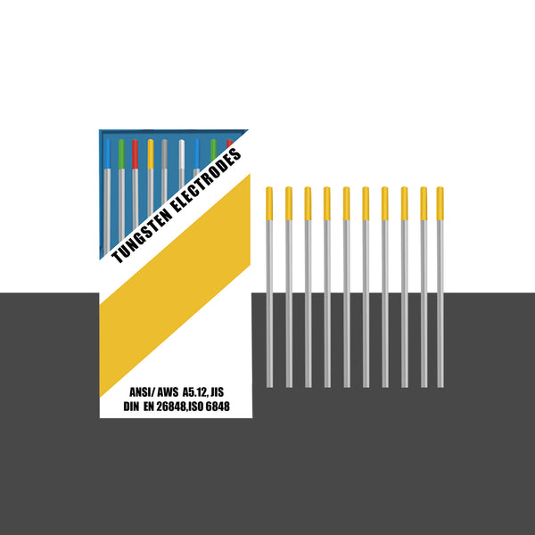 Most commonly used non-radioactive tungsten. Offers long electrode life under heavy or pulsing amperage loads. It has the ability to resist thermal shock which provides the user with excellent ignition with a lower burn off rate.