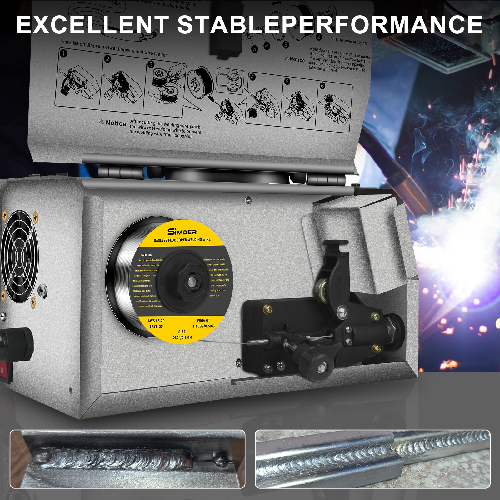 SSimder MIG-140S Gasless 3 in 1 MIG Welder