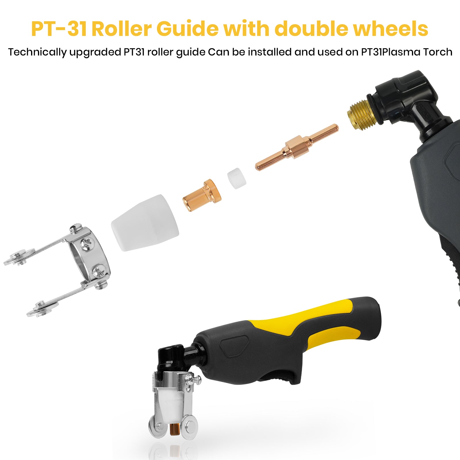 Stable Plasma Cutting: The roller guide wheel spacer can be adjusted to follow and fix different types of PT-31/LG-40 plasma cutting torch, ensuring a stable and balanced cutting experience. Inner diameter adjustment from 21mm/0.83in to 25mm/0.98in.